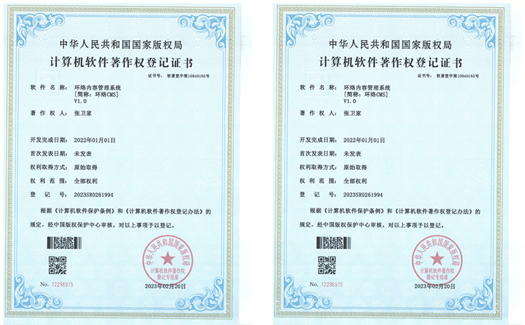 环络内容管理系统取得国家版权认证,所有网站一律正版商业授权